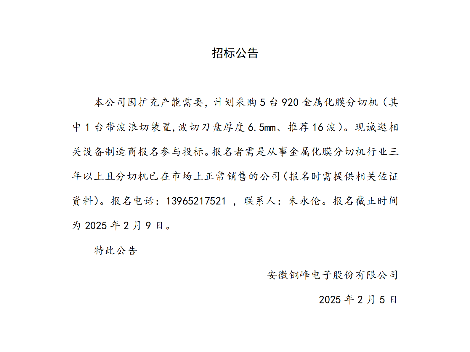 銅峰工業(yè)園新能源用電子元器件廠房項目消防工程補(bǔ)充公告
