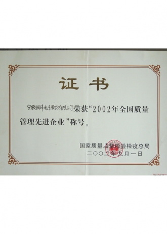 全國質(zhì)量管理先進(jìn)企業(yè)