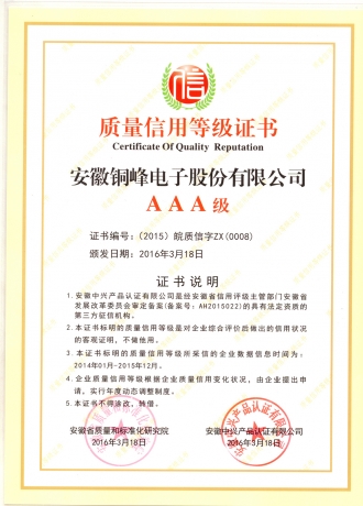 AAA質(zhì)量信用等級