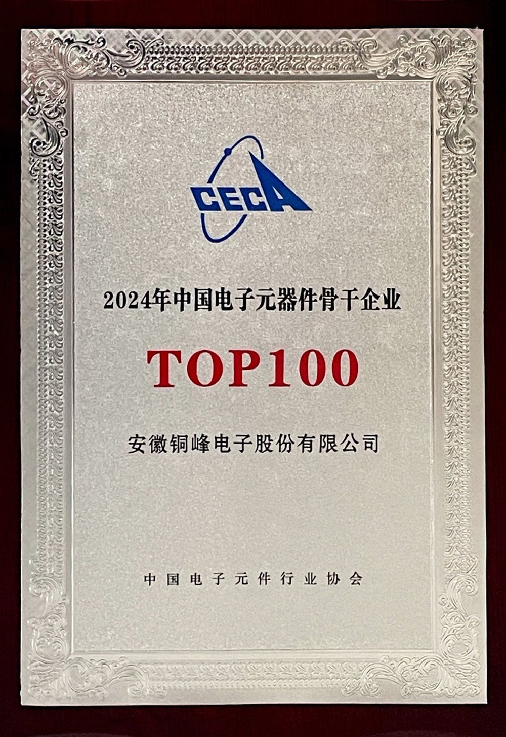 會議過程中,除舉辦主題演講、高端對話、分會平行論壇外,還舉行了2024年中國電子元器件行業(yè)骨干企業(yè)授牌儀式,公司再次獲評“中國電子元器件骨干行業(yè)TOP100 ”榮譽(yù),這是公司連續(xù)三十余屆入選行業(yè)百強(qiáng)。