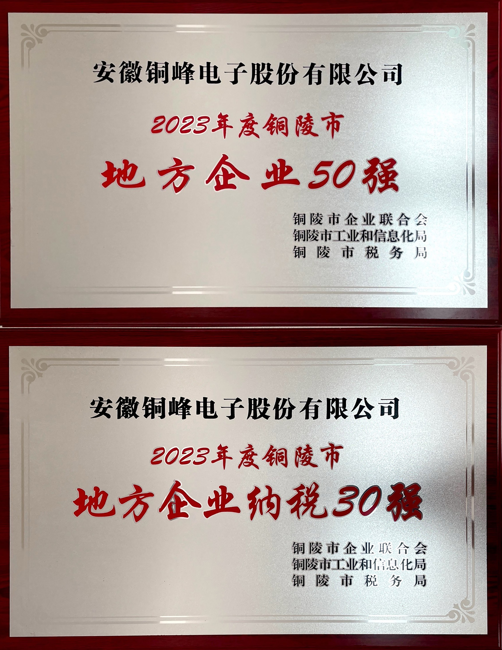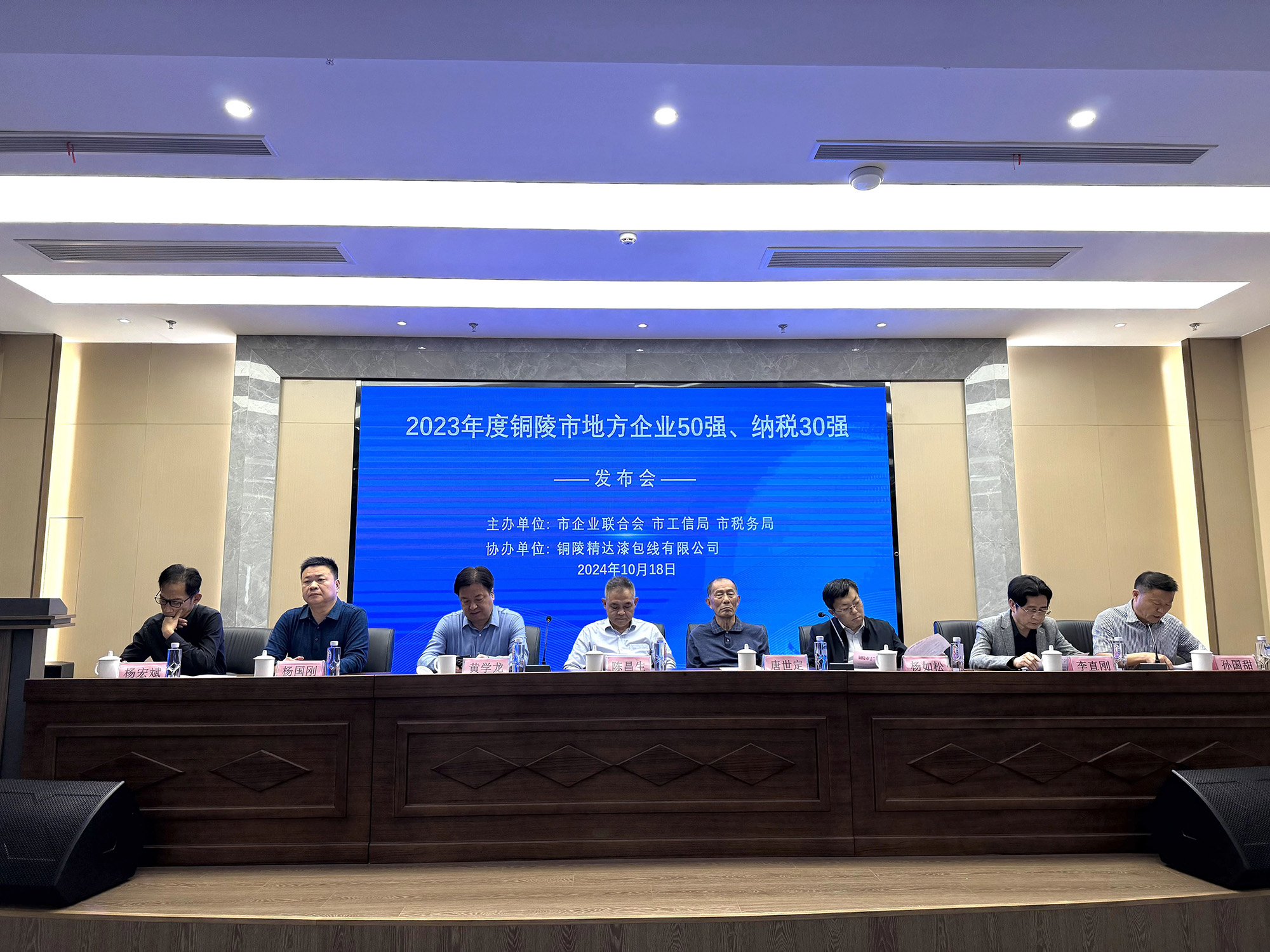 10月18日,由市企業(yè)聯合會、市工信局、市稅務局主辦的2023年度銅陵市地方企業(yè)50強、地方企業(yè)納稅30強發(fā)布會舉行,公司再次榮獲“地方企業(yè)50強”“地方企業(yè)納稅30強”兩項榮譽。公司副總經理、財務總監(jiān)郭傳紅代表公司現場領取榮譽牌匾。