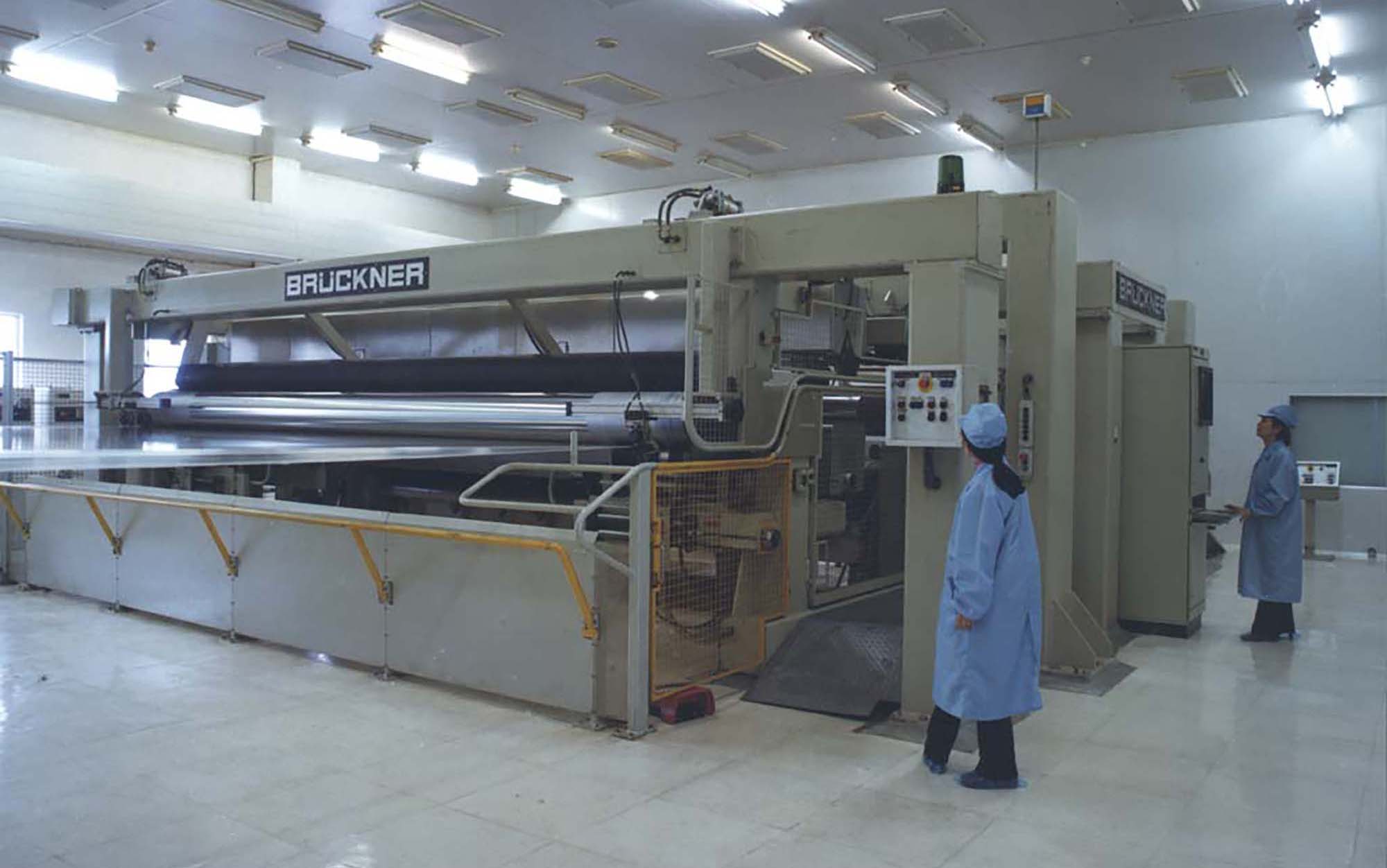 銅峰“老一線(xiàn)”于1989年建成投產(chǎn)。上世紀(jì)80年代,當(dāng)時(shí)國(guó)內(nèi)電容器用聚丙烯膜幾乎完全依賴(lài)進(jìn)口,嚴(yán)重制約了我國(guó)電容器等相關(guān)產(chǎn)業(yè)的發(fā)展。銅峰公司前身銅陵市無(wú)線(xiàn)電元件二廠積極響應(yīng)國(guó)家需求,決定從國(guó)外引進(jìn)雙向拉伸電容器用聚丙烯膜生產(chǎn)線(xiàn)。1985年項(xiàng)目啟動(dòng),經(jīng)過(guò)一系列籌備工作,1986年獲得國(guó)家計(jì)委批準(zhǔn)立項(xiàng),并被列入國(guó)家 “七五” 機(jī)械電子工業(yè)重點(diǎn)技改項(xiàng)目。1988年,主線(xiàn)和相關(guān)輔助設(shè)備成功引進(jìn)。經(jīng)過(guò)一年多的緊張建設(shè),1989年生產(chǎn)線(xiàn)正式投產(chǎn)?!袄弦痪€(xiàn)”的建成投產(chǎn),是銅峰發(fā)展史上具有重要意義的轉(zhuǎn)折點(diǎn)。該線(xiàn)加速了銅峰公司產(chǎn)品結(jié)構(gòu)調(diào)整和轉(zhuǎn)型步伐,并由此形成了全國(guó)唯一的“電工三膜”(電容薄膜、金屬化膜和薄膜電容器)一條龍的生產(chǎn)格局,使企業(yè)的經(jīng)濟(jì)規(guī)模和技術(shù)水平躍上一個(gè)新臺(tái)階。
